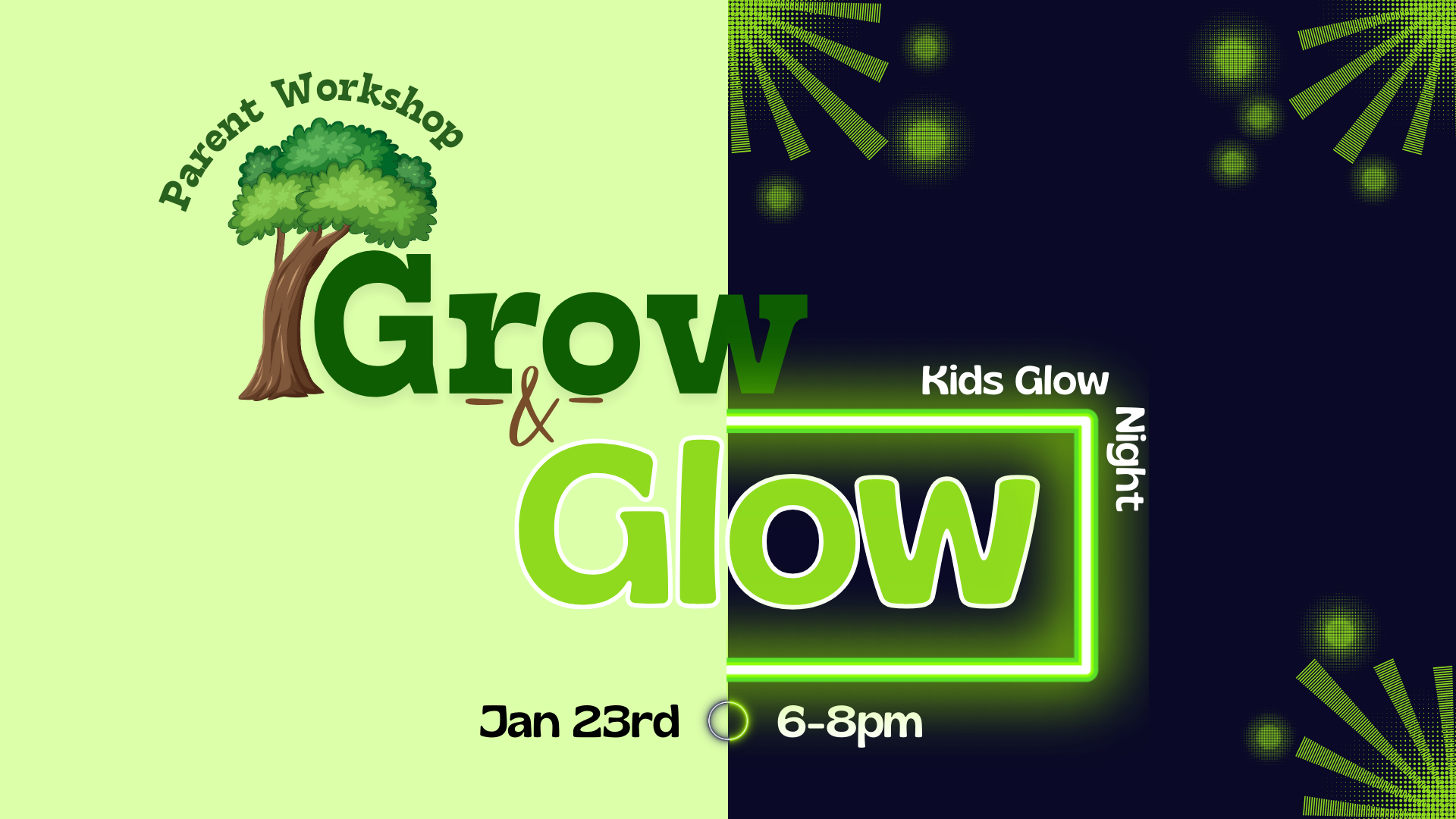 Parents and Kids of all ages, you won't wanna miss this! "Grow and Glow" is a fun night that begins with family dinner and fellowship. Then, kids will head off for a Fun Glow Party and Worship and parents will experience a practical Parenting Workshop. A panel of a pastor, counselor and experienced parents will help us grow in Godly parenting. They will share tips and advice on spiritually discipling our kids, digital media and helping kids own their faith so that when they leave the house they go with a strong personal relationship with Jesus. It's a valuable night for families of every stage! Nursery is available for littles (Pre-K will have some glow fun too)! There will be age divided groups for the Kids Glow Night (Elementary and 5th-6h). Join us as we grow together! Register by Jan 21st. $25/family, scholarships available