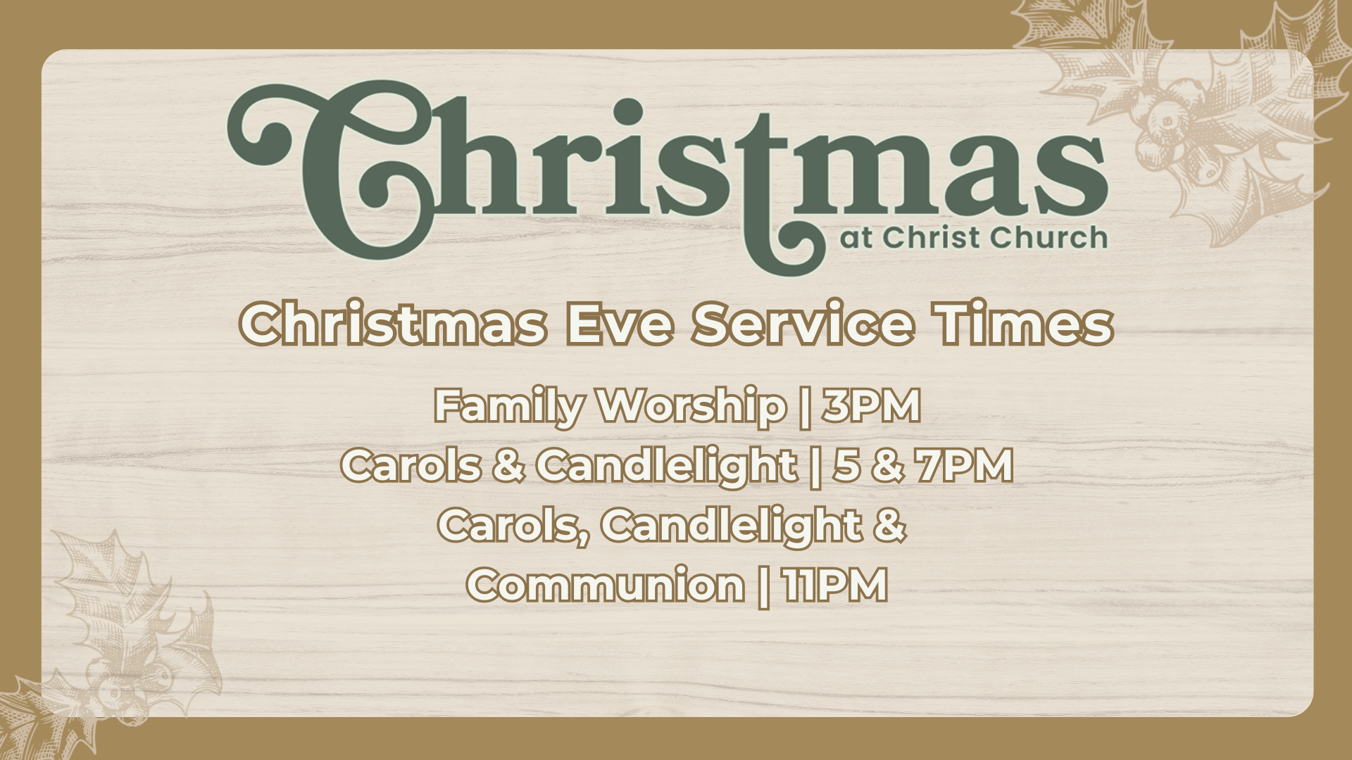 - 11PM – Carols, Candlelight and Communion