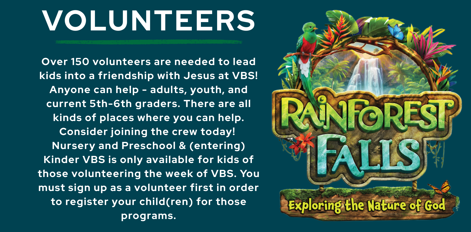 Kids will enjoy a variety of fun and engaging activities, including crafts, games, music, and Bible lessons. Each day is designed to be an adventure that reinforces the theme of trusting Jesus as our True North.How can I get involved as a volunteer?